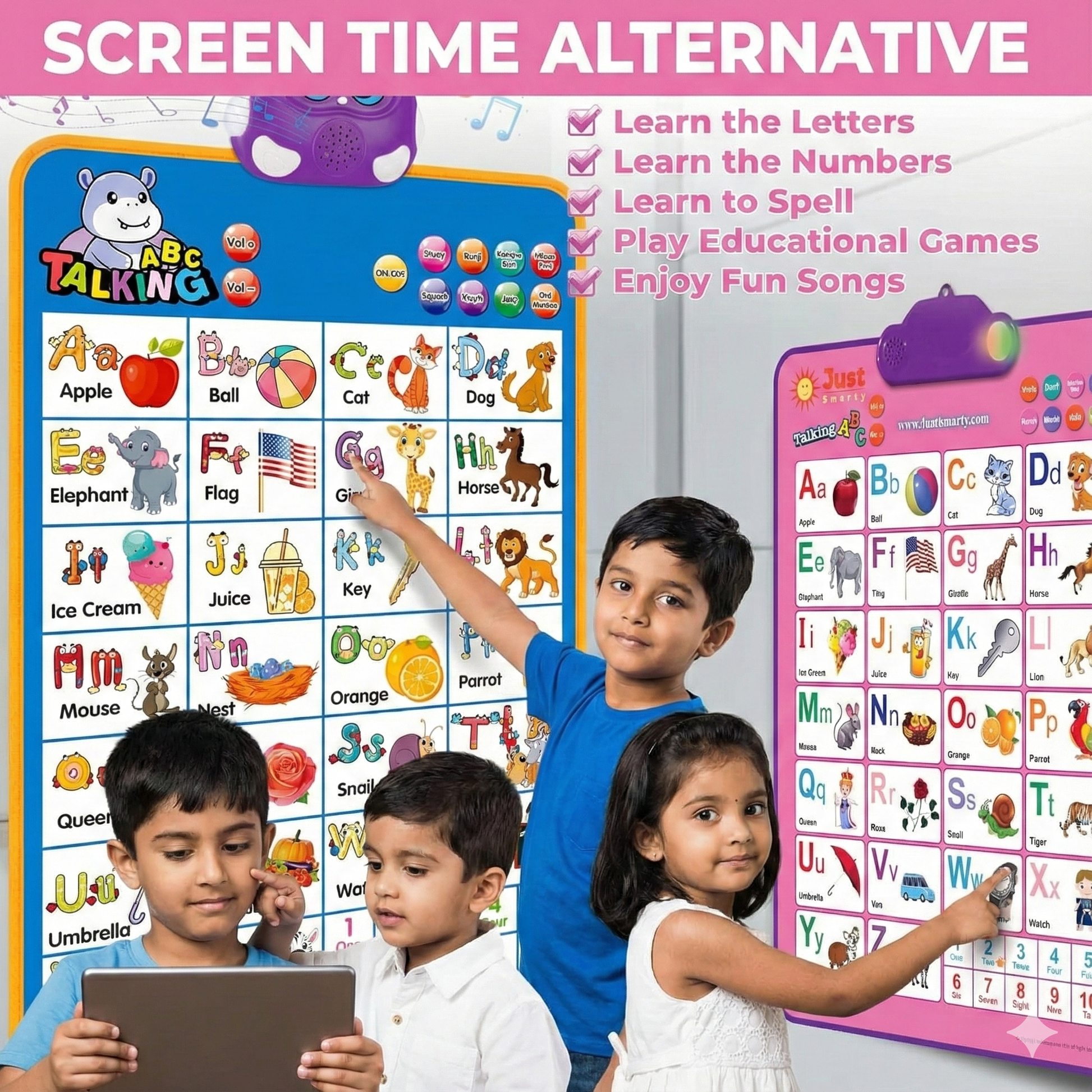Smart Talking ABCD & 123s & Music Wall Poster For Kids Learning