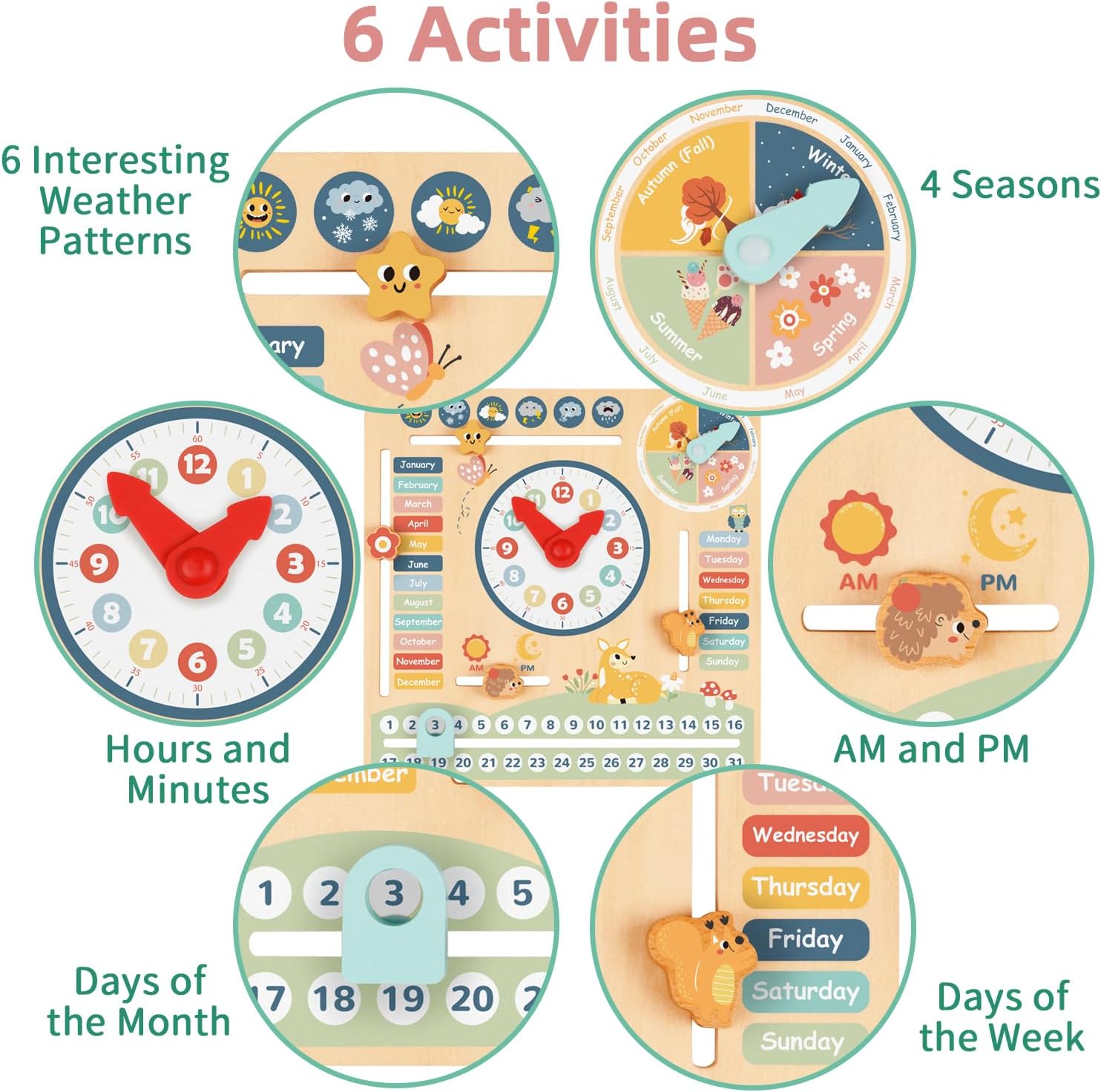 Interactive "Slide & Set" Features: Unlike paper calendars, this board is built for action! Your child can slide the colorful pegs to mark the Day of the Week, Month, and Date. It satisfies their urge to fidget and move things while teaching them how a calendar works.